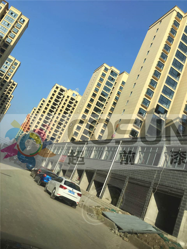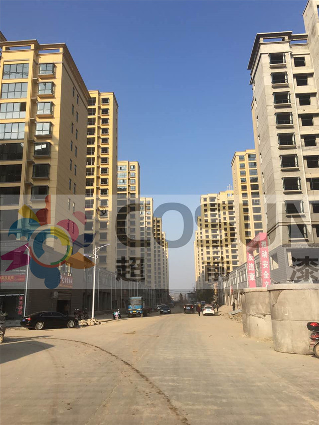 河南信陽潢川縣先峰社區,工地面積30萬平方,在經過甲方層層篩選重重考察后,超前真石漆脫穎而出,成為指定品牌,并達成長期合作,項目中外墻真石漆、質感漆、乳膠漆為指定產品。